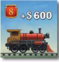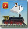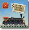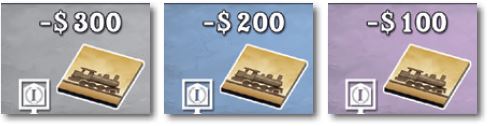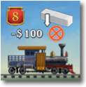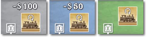Pay $100, take the leftmost rail from your Player Board, and place it in an available rail space of your choice at no further cost. Ignore the effect of any Deal or 'Difficult terrain' icons.