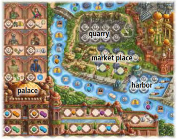 Such bonus spaces can get you extra dice as well. The palace also provides opportunities to obtain and exchange individual dice.