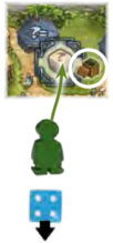 Give up a die showing a 1, 2, or 3 and advance up to three unoccupied spaces on the river