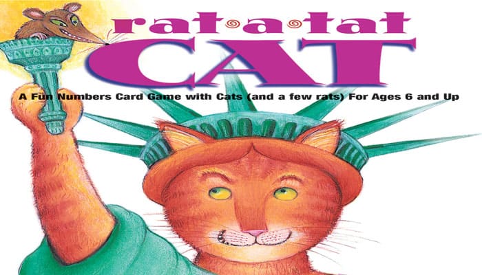 Get rid of the rats and go for the cats! In Rat-a-Tat Cat, less is always better, and you want to go out with the lowest score. Can you remember the numbers on the other players' cards? Can you keep a poker face, but notice when another player looks pleased? Sharpen your memory and your timing, and have fun with the cool cats and bad rats of Rat-a-Tat Cat.