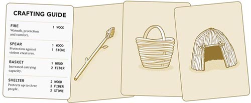 A maximum of 3 Hearts per player can be turned over at once. You may gather an extra Forage card if you have a Basket (see CRAFTING). Wait until all players have returned to camp to flip over your new cards. You may share what you found or keep it to yourself.