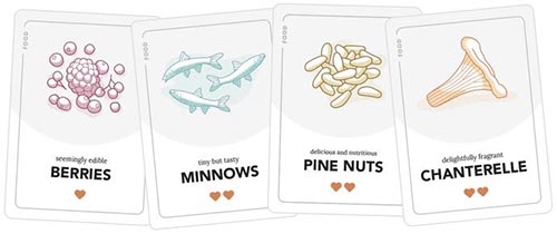 After Foraging, players can decide individually (or as a team) how to use what they've collected; cards can be used, shared, traded, or saved for later. All Forage cards are discarded after 1 use.