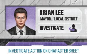Investigate: This action provides the players with informationt about cards in the crowd.