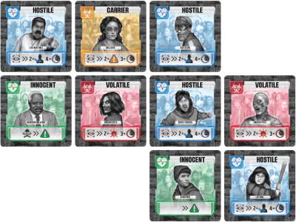 If playing the intro level game, place the following population cards back into the game box: 5 hostile, 3 family, 2 celebrity, 4 chaotic, 4 carrier, 4 volatile.