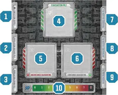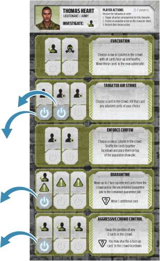Evacuate: This action moves healthy cards to the evacuation pile.