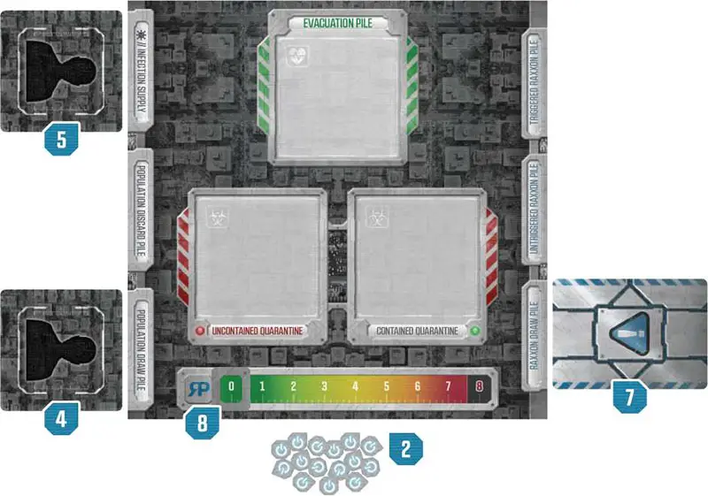 All card piles may be counted at any time. The population draw pile, infection supply, and Raxxon draw pile should be facedown.