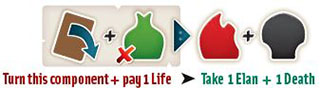 on rivals, except those who have passed. Each rival must lose the indicated number of Life essences from their pool. For each Life essence a rival does not have, they must instead, if possible, lose any 2 other essences in their pool (including Gold).