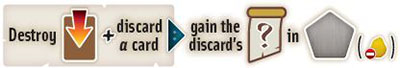 Some powers involve discarding or destroying your artifacts. Discarding is from hand, whereas destroy is to discard from play. Put the card in your discard pile (tucked sideways under your deck). If there are essences on the destroyed card, return them to the supply. A turned artifact can be destroyed (by another component's power).