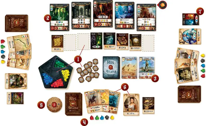 1 Put the 8 magic items, tray of essences, and 5x essence chips in the center to form the supply.