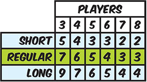 Decide how long of a game you want to play and use the chart on the right to deal out the appropriate number of cards to everyone.