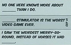 When all responses are in, the Judge picks the answer that they like the best and gives the card they read from to the winning player. The winning player puts this card under their Score Pile card.