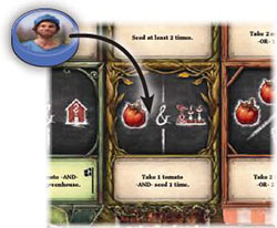 Example: To advance your manager to this next table, you must discard 1 tomato from your stock.