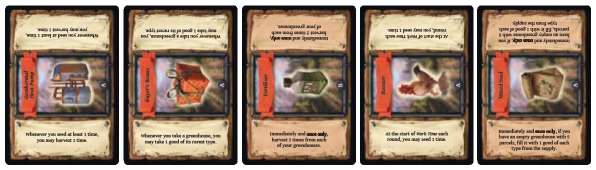 During Harvest Time, each player harvests 1 time from each of their filled greenhouses. If you have a greenhouse with different goods (possible due to service card effects), you decide which to harvest.