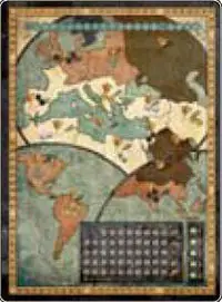 Most of the game board depicts the "known" world and is called "world map". The world map is divided into regions. The color scheme used for the regions signifies which regions are playable during each given era.