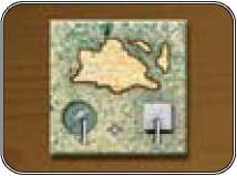 Example: Dan wants to take over control of the centrally located Mediterranean. He takes the "1" (water) empire tile and places 3 of his (green) cubes into the Med. Peter (red) currently controls the area with 2 cubes.