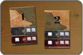 Shuffle the territory tiles.Place 4 territory tiles face down in each box of the territory track.