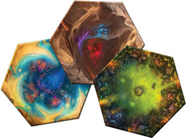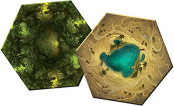 Special terrain tiles can be swapped with the basic terrain tiles during set up to add bonuses, difficult terrain and hazards to the game. Choose 1 or mix and match several special terrain tiles to change things up or create a scenario to play.