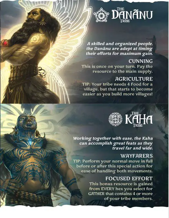 Special: On these terrains, the active player must have 3 tribe members there before they can GATHER from this tile. Once that requirement is met, the tiles produce the normal amount according to GATHER.