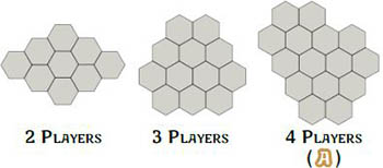 Lay the Terrain Tiles face up - randomly - in the configuration shown based on number of players.