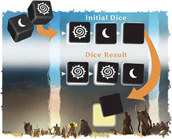 2 MOONS = If you see 2 moon symbols on the dice (any combination) then this is a low point for civilization! Not to worry, your tribe still claims a reward.