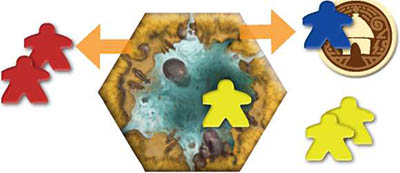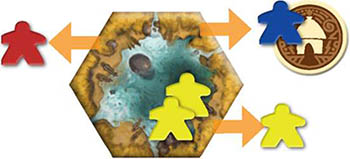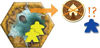 Acting simultaneously, each player removes 1 of their tribe members from the hex. This repeats until no more than 1 player's tribe members remain in the hex.