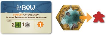 If the current player has the Bow development card, they may remove one defending tribe member of their choice from the hex before continuing with conflict resolution.