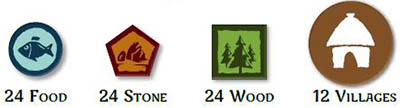 At the end of their turn players may build any number of villages by spending the indicated resources on their tribe card and placing a village disc on a hex that contains their tribe members and no other village.