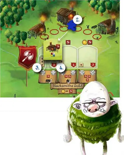 - Place the Workshop in the corresponding Guild on the leftmost available Workshop slot.