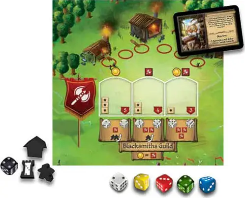 Red and Blue dice: a die slot in a Guild (blocking the Guild for the Round)