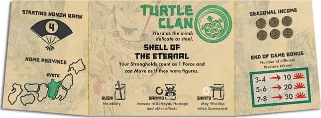 Each Clan starts the game with a Daimyo, a Bushi, and a Stronghold in its indicated Home Province.