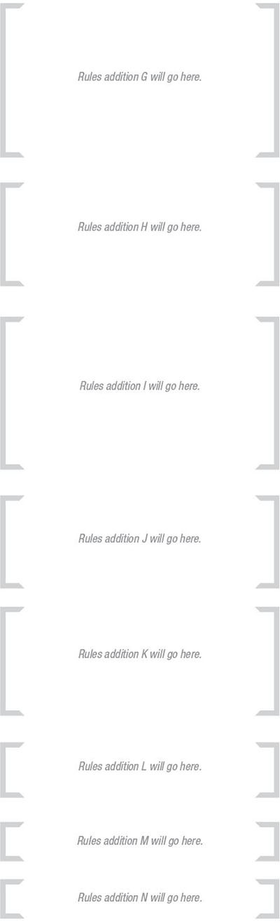 After 15 games, no further changes are made to the game from Winning or Holding On. The game is now played in a world entirely of the players' making. Other elements in the game, such as cards, new components, Scars, etc. will still change the world.