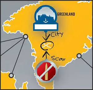 - An unoccupied territory that contains a Major City that you founded in an earlier game, (even if it has a scar on it).
