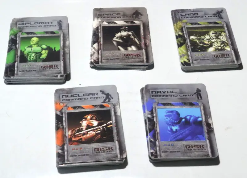 Separate cards into 8 decks (3 territory, 5 command); remove any "wild MOD" and blank cards.