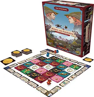 The players collect Loot tiles by moving their Robin pieces on the board. A set of Loot tiles in the same color may be sold to earn gold. This gold may be spent to help the player's Bard piece move around the Race Track on the outside of the board.