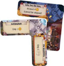 The final tile of the game ("Long Live the King") is special. It can only be fulfilled by paying 4 Gold coins. It cannot be fulfilled by only paying 1 Gold coin like other tiles in the game.
