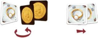 Discard two of the Loot tiles on the open discard pile and collect the remaining ones as Gold coins by turning them over. Every Loot tile has a Gold coin printed on its back.