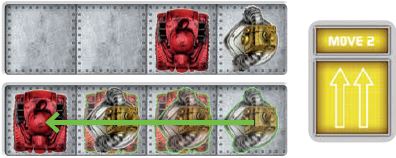As Smash Bot moves two spaces, he pushes Hulk x90 two spaces.
