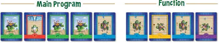 Turtle Masters should place their cards in a line or sequence so that at the end of the game they have one long "program" showing how the Turtle reached the Jewel.