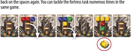 Following completion of the forest task, return all of the placed dice to their respective owners and put the boundary tile back below the arch. You can tackle the forest task numerous times.