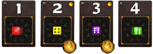 For four players, place one Gold on the "2", "3", and "4" cards.
