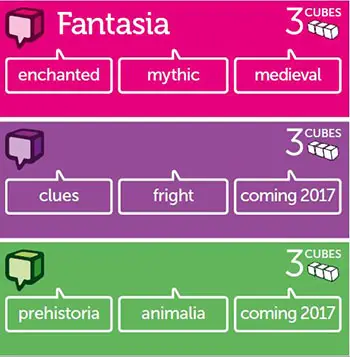 Roll three cubes and use them to create a character. Now roll all nine cubes and tell a story featuring your hero. What will happen when your hero finds herself at the pyramids in Ancient Egypt, or with a turtle for a sidekick?