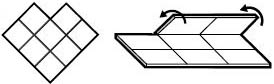 Flip half of the square down and under to make a 4-layered stack. (If RUBIK'S Magic resists, unfold the square, turn it over, and try again).
