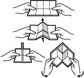 OPEN by pulling apart a top and bottom row of panels to make a 3-dimensional figure.