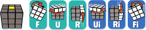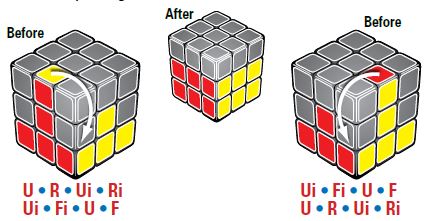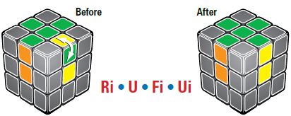 The letter 'i' means inverse, or counter- clockwise. Before you start each move, be sure to place your thumbs on the Fside of the cube, as shown in the illustration. This will ensure that your cube is properly oriented to execute the move.