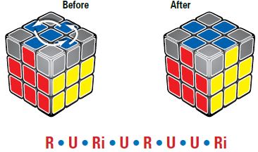 If you find a corner piece that's already in the top layer but it's in the wrong spot or flipped the wrong way, just hold the cube with that piece in the upper front right position, and do Ri • Di • R • D once.