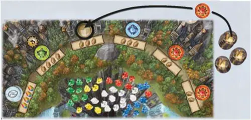 Additionally, the player takes one rune stone from the display, and places it at the top of their player board. Each rune stone grants the player a special ability for the rest of the game.