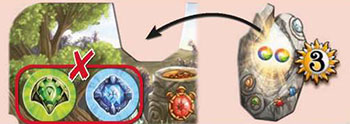 The player returns the gems and/or wild gems as shown to the general supply, then gains points and/or gems from the general supply as shown.