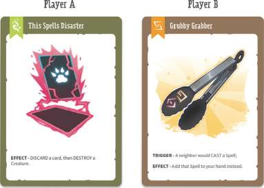 Example: Player A plays This Spells Disaster. Player B ACTIVATES Grubby Grabber. The effect of This Spells Disaster is nullified, and Player B adds This Spells Disaster to their hand.