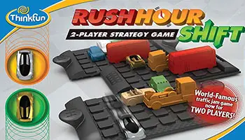 Two players face off in Rush Hour Shift, with each trying to be the first to get their car to opponent's side of the playing area.