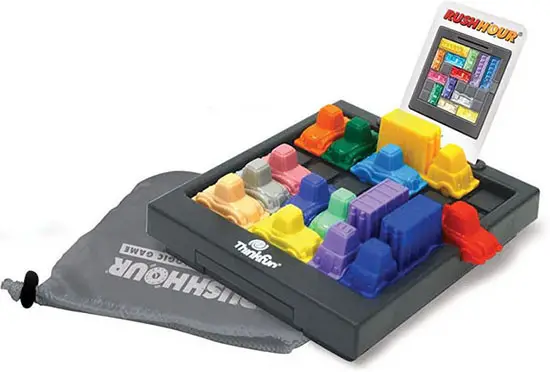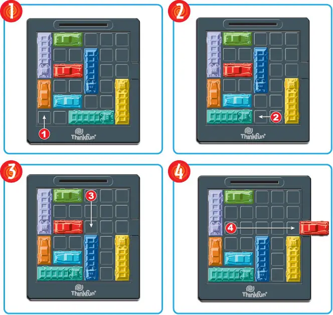 Slide the blocking cars and trucks in their lanes-up and down, left and right-until the path is clear for the red car to escape.